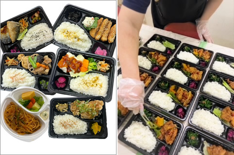 お弁当のご飯やおかずの盛り付け作業です。