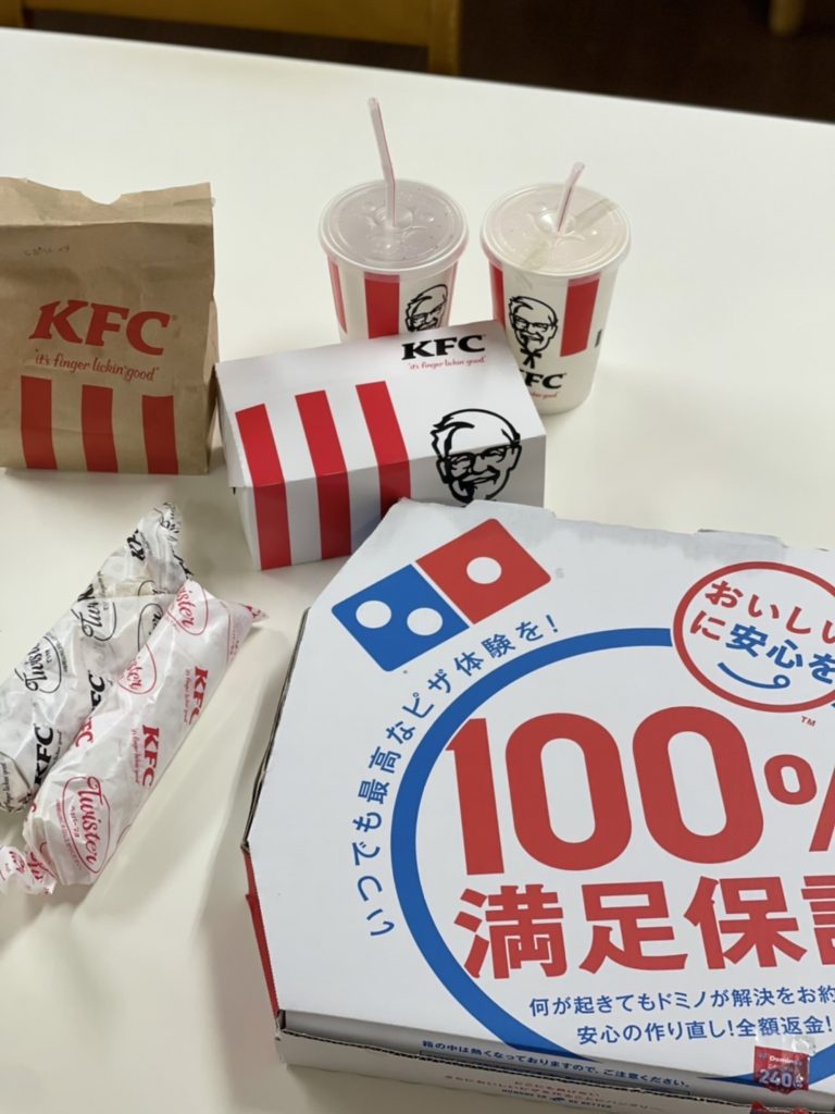 ピザやケンタッキーをテイクアウトして事業所内で食べました★